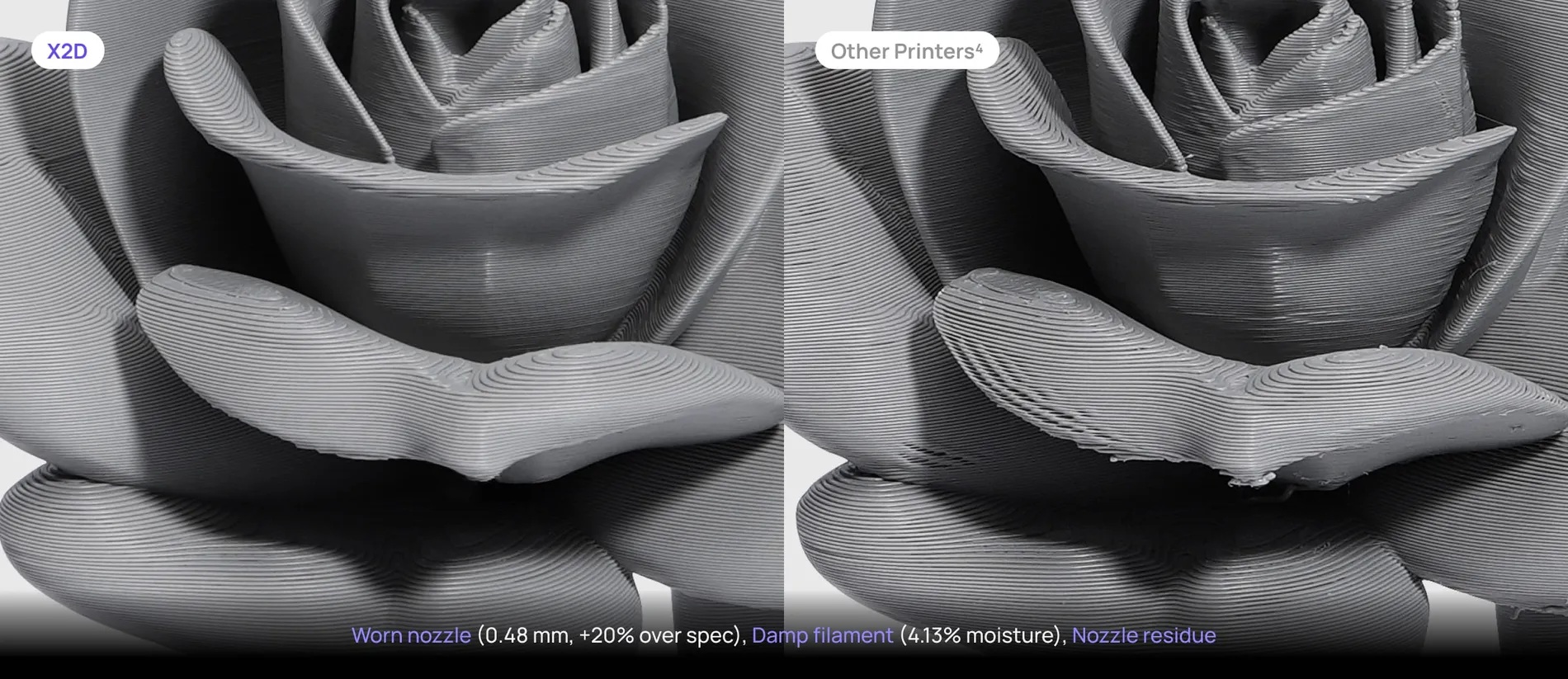 Με το σύστημα PMSM servo και την έξυπνη διαχείριση ροής υλικού, το X2D προσφέρει εξαιρετικά λείες επιφάνειες και υψηλή ακρίβεια ακόμα και σε μεγάλες ταχύτητες.