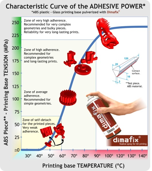 Το DimaFix είναι ένα συγκολλητικό σπρέι σε μορφή αεροζόλ που προσφέρει ισχυρή πρόσφυση ανάμεσα στο πρώτο στρώμα και την επιφάνεια εκτύπωσης όταν η πλάκα θερμαίνεται πάνω από 60ºC. Κάτω από τους 60ºC το DimaFix απενεργοποιείται, ώστε οι εκτυπώσεις να μπορούν να αφαιρεθούν εύκολα από την πλάκα. Το DimaFix – Fixative spray παρέχει ισχυρό δεσμό μεταξύ γυαλιού και πλαστικού, ο οποίος μπορεί να “σπάσει” εύκολα όταν χρειαστεί. Το σπρέι κόλλας είναι πλήρως υδατοδιαλυτό, οπότε ο καθαρισμός της πλάκας είναι πολύ εύκολος.