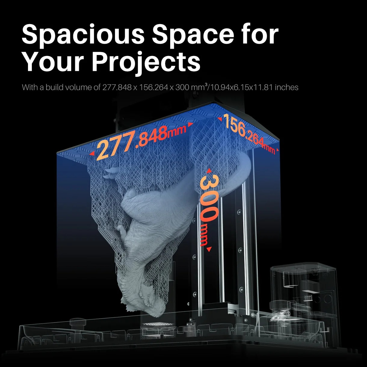 Με όγκο εκτύπωσης 277,848 × 156,264 × 300 mm (10,94 × 6,15 × 11,81 ίντσες), προσφέρει άφθονο χώρο για πιο φιλόδοξα έργα. Μπορείτε να εκτυπώσετε μεγαλύτερα μοντέλα ή πολλαπλά κομμάτια σε μία μόνο παρτίδα, κάτι που το καθιστά ιδανικό για επαγγελματική ή εμπορική χρήση.