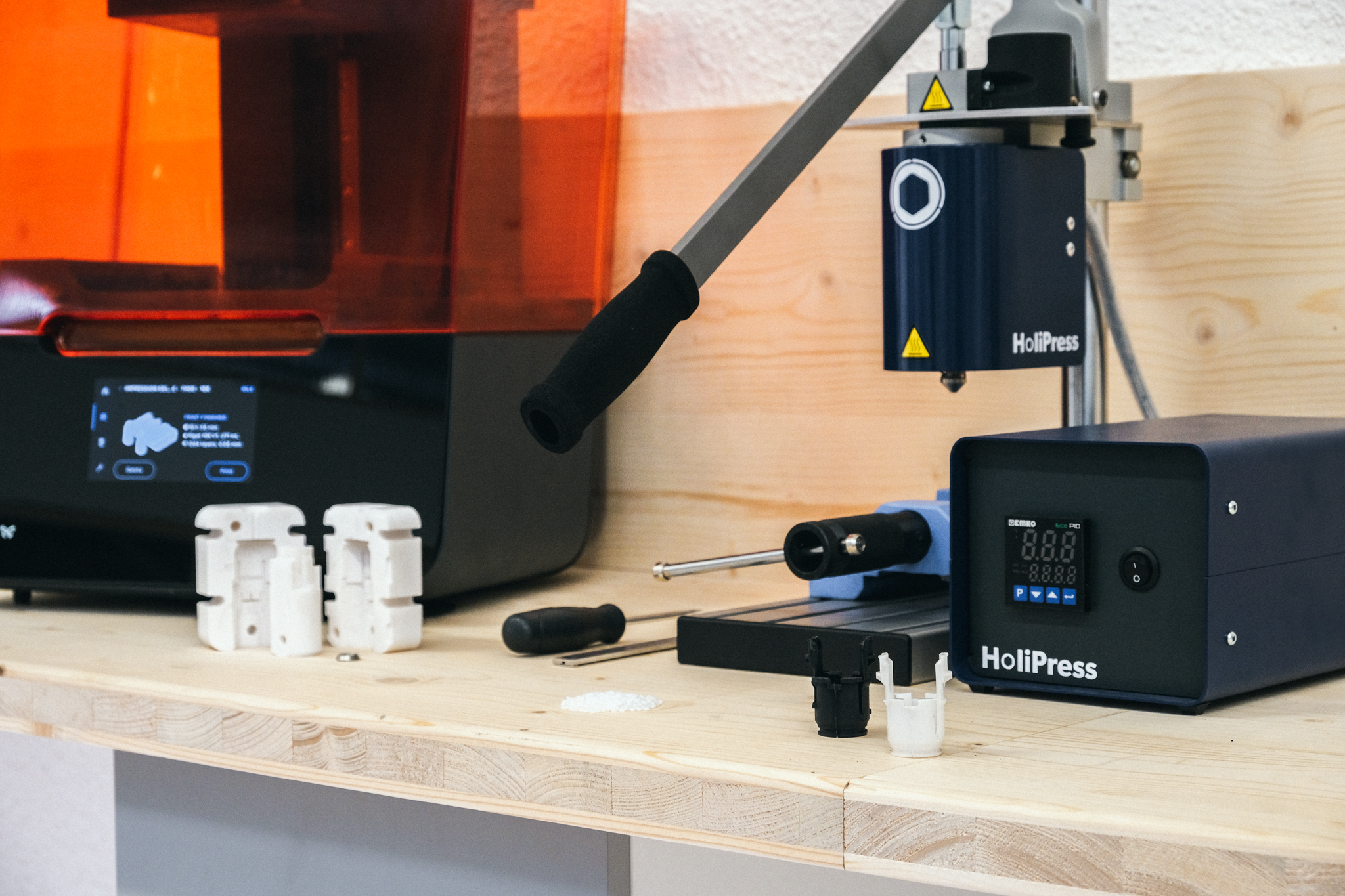 Η HoliPress 16+ σας επιτρέπει να εγχέετε χειροκίνητα πλαστικά εξαρτήματα χρησιμοποιώντας τυπικές βιομηχανικές πρώτες ύλες. Ο συμπαγής σχεδιασμός και η ευκολία χρήσης της σάς επιτρέπουν να παράγετε πλαστικά πρωτότυπα σε χρόνο ρεκόρ.